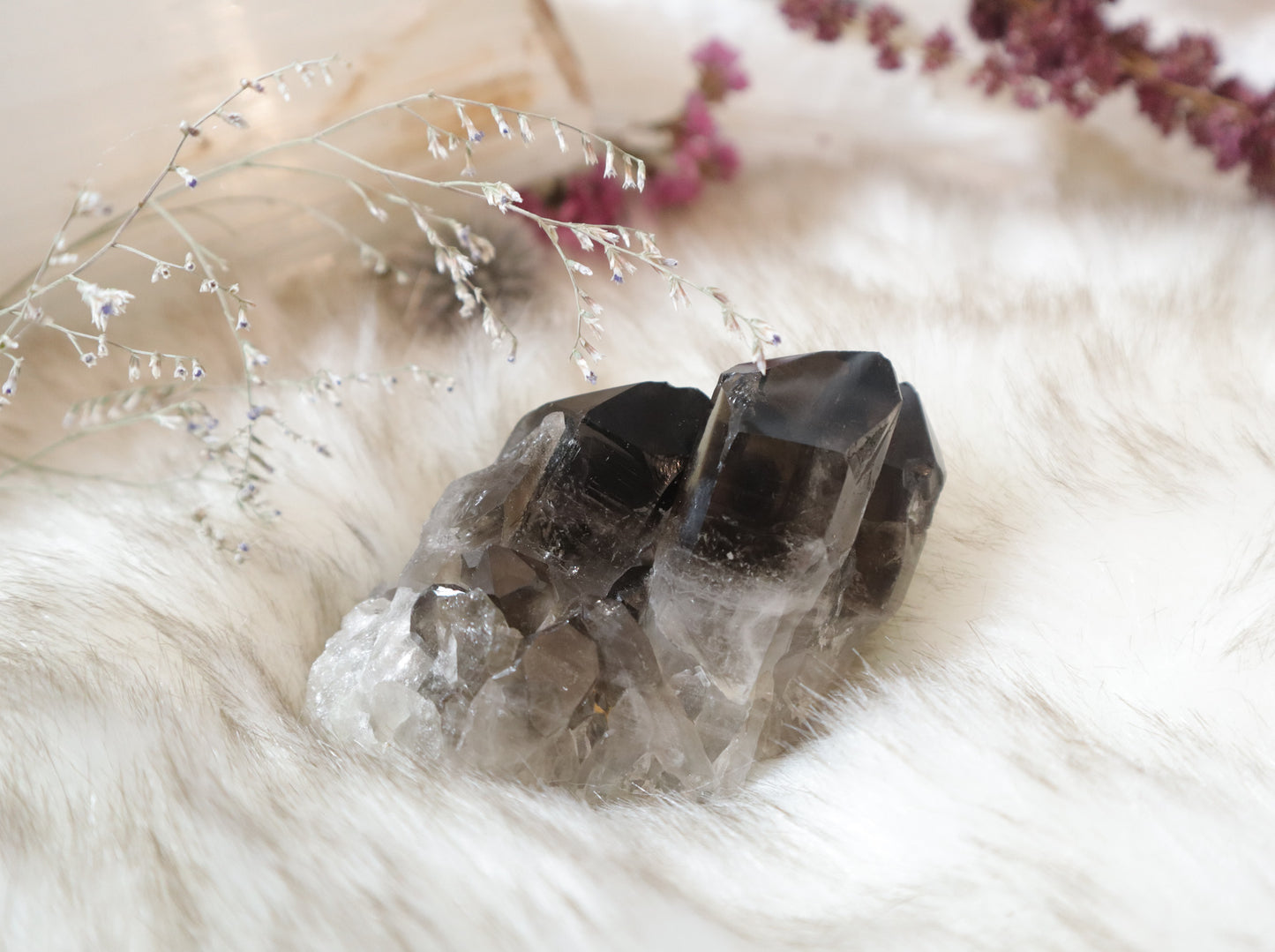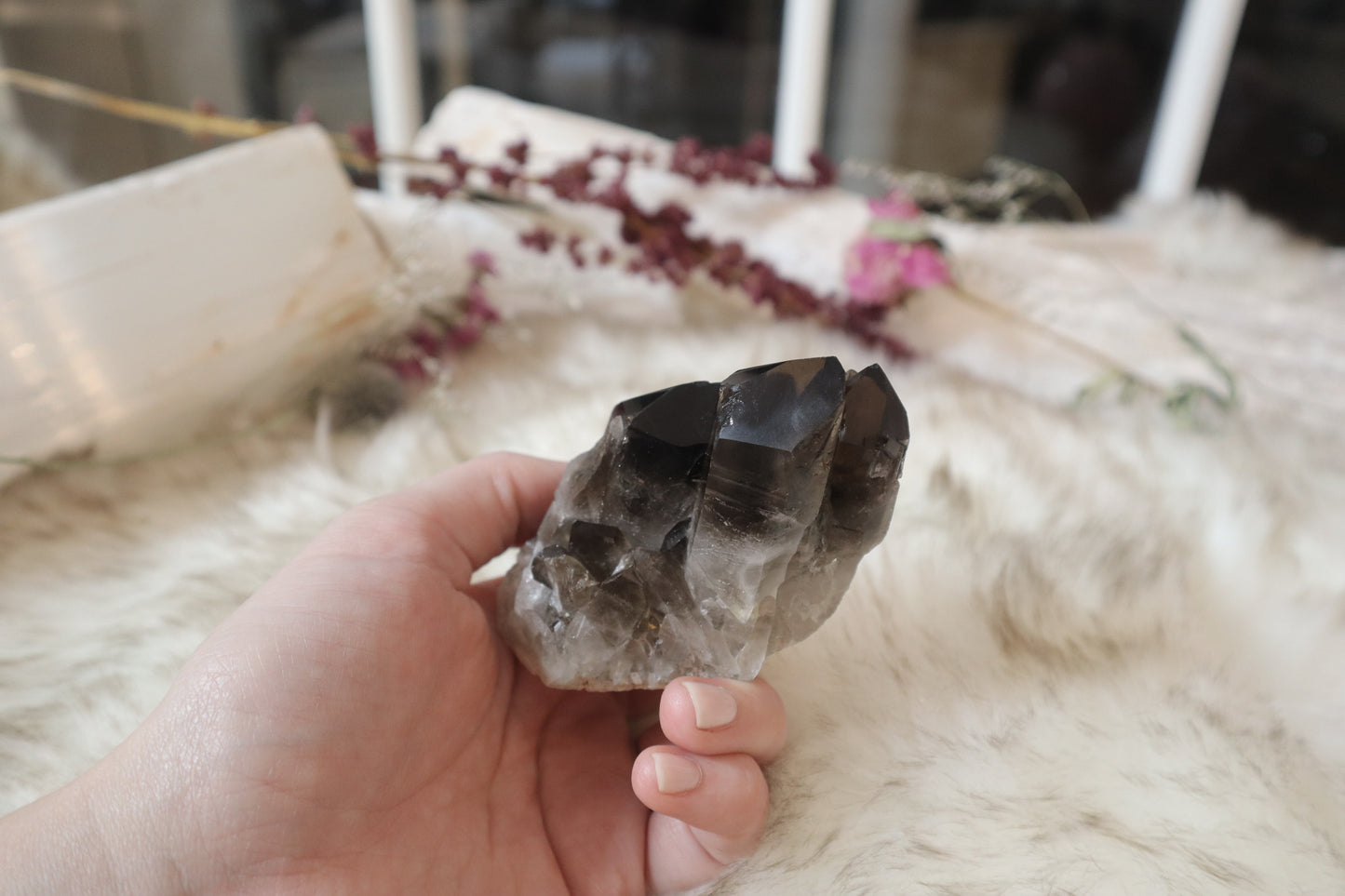 "Smokey Quartz is an excellent grounding stone. It gently neutralizes negative vibrations and is detoxifying on all levels. It disperses fear, lifts depression and negativity. It brings emotional calmness, relieving stress and anxiety. Dispels nightmares and manifests your dreams."